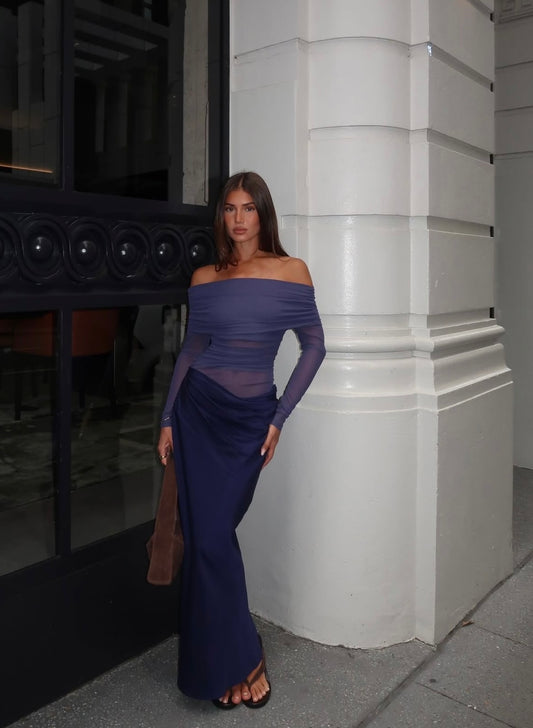 Yasmin Off Shoulder Maxi Dress - Navy