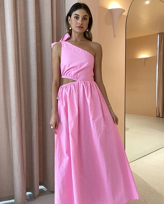 Gabriella One Shoulder Midi Dress - Pink Grapefruit