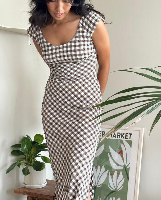 Prism Midi Dress - Brown Gingham
