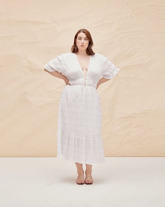 Cass White Asym Linen Midi Dress